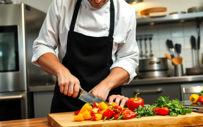 Chopping involves cutting food into pieces of varying sizes. Chefs often use a chef’s knife for this process, as it provides versatility. Dicing requires uniform pieces, promoting even cooking. Proper technique includes a claw grip, ensuring fingers are safely tucked away. A consistent size, such as 1/4 inch or 1/2 inch, plays a crucial role in cooking times and presentation. Speed improves with practice, allowing cooks to work quickly and confidently.